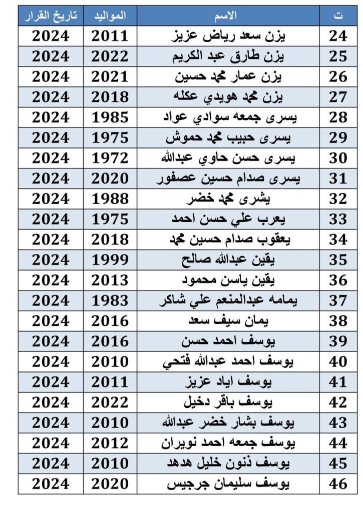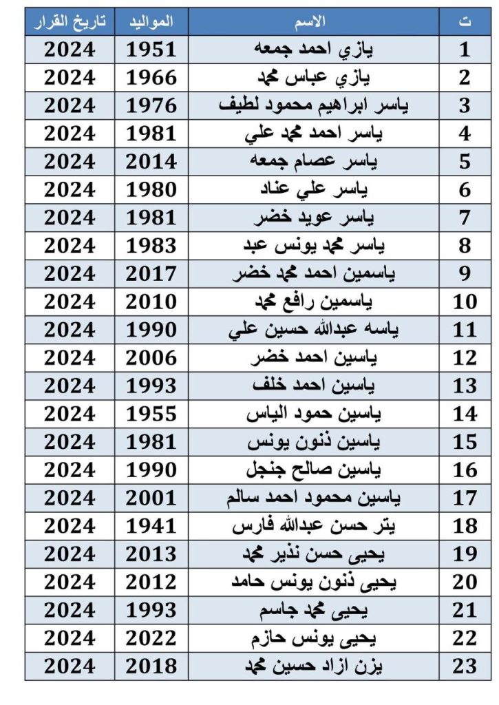 📌 ملاحظة: يمكن للقارئ الاطلاع على قائمة الأسماء الكاملة من خلال الرابط الذي نشرته الوزارة أو الجهات الرسمية ذات العلاقة.