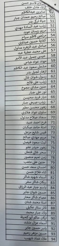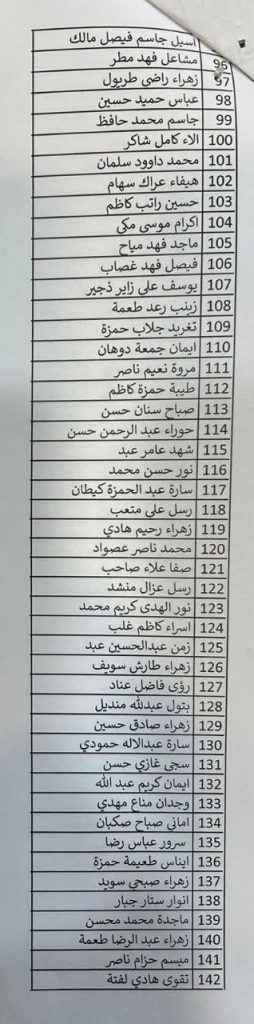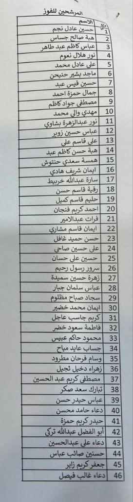 وأوضحت المحافظة أن الأسماء التي ظهرت في القوائم المعلنة تُعد مشمولة بالمباشرة الفورية، داعية جميع الفائزين إلى الحضور إلى مبنى المحافظة – قسم الموارد البشرية في تمام الساعة الثامنة من صباح يوم غد الأحد الموافق 7/12/2025، وذلك لغرض استكمال إجراءات المباشرة والتوقيع على العقود الرسمية.
