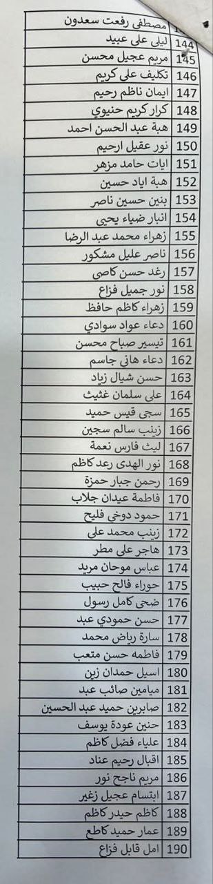 وأوضحت المحافظة أن الأسماء التي ظهرت في القوائم المعلنة تُعد مشمولة بالمباشرة الفورية، داعية جميع الفائزين إلى الحضور إلى مبنى المحافظة – قسم الموارد البشرية في تمام الساعة الثامنة من صباح يوم غد الأحد الموافق 7/12/2025، وذلك لغرض استكمال إجراءات المباشرة والتوقيع على العقود الرسمية.