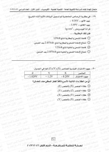 امتحان الكيمياء 2023 علمي ونموذج الإجابة الرسمي