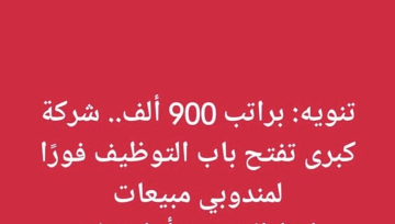 براتب 900 ألف… شركة كبرى تفتح باب التوظيف فورًا لمندوبي مبيعات